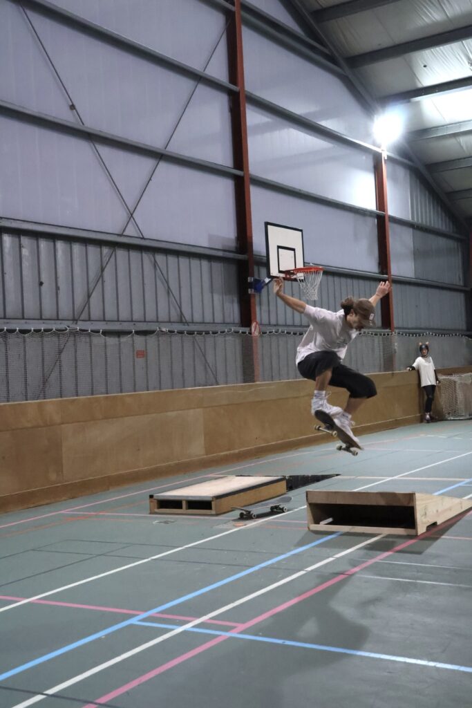 De 16 h à 20 h, adhérents, parents et enfants ont partagé un moment 100 % convivialité et figures de skate. Pas de skatepark couvert ? Pas de souci : on a monté des modules , certains faits maison, des rampes, rails, plans inclinés pour que chacun puisse s’éclater. Au programme : un run de 45 secondes pour montrer ses meilleurs tricks, et un défi “Best Trick” sur un module précis. Certains découvraient la compétition, d’autres se défiaient tranquillement, mais toujours dans une ambiance détendue et sans pression.