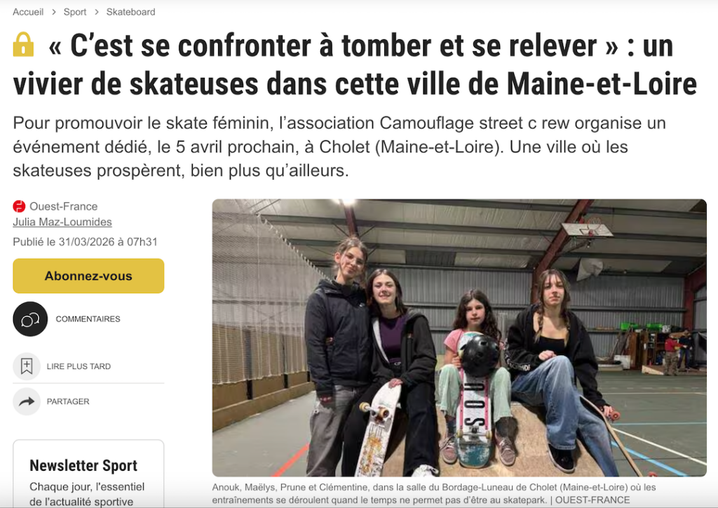 A quelques jours de la nouvelle édition 2026 de la Girls Skate Crew organisé par le club, quelques skateuses de Cholet ont répondu à une journaliste de Ouest France.