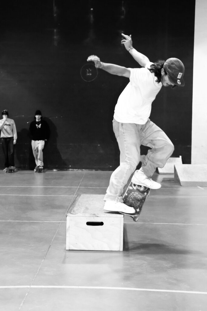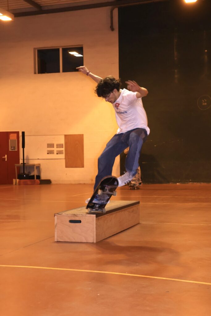 Le switch signifie faire une figure ou rouler en position inverse de ta stance naturelle (c’est-à-dire avec le pied qui est normalement devant placé derrière, et vice versa). Par exemple, si tu es “regular” (pied gauche devant), rouler en switch, c’est mettre ton pied droit devant. C’est un peu comme écrire de la main gauche quand tu es droitier : ça demande de l’entraînement, mais c’est super utile pour varier les tricks, progresser et gagner au game of skate ! Lors de cette édition du Game of Skate à Angers, Aciel a remporter la compétition en imposant un switch back 360.
